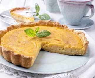 - ضعي خليط التارت في صينية و ادخليه الفرن لمدة 30إلى 40 دقيقه ثم اتركيه ليبرد.