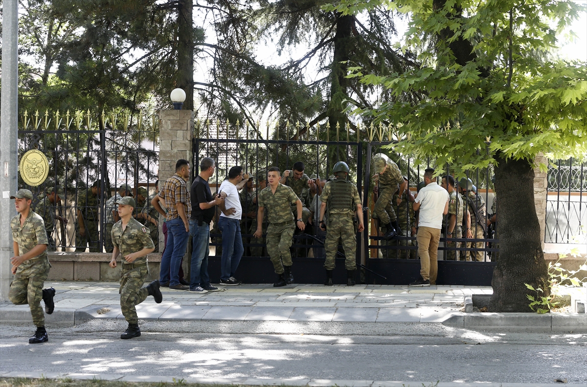 أفادت وكالة الأناضول اليوم، بخروج حوالى 200 ضابط وجندي بدون سلاح من مبنى رئاسة الأركان التركية في أنقرة، وتسليم أنفسهم للشرطة التركية.