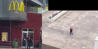 أظهر فيديو تم تداوله على مواقع التواصل الاجتماعي لحظة قيام أحد المهاجمين بإطلاق النار على المارة في ميونخ خارج مطعم ماكدونالز بالقرب من مركز أولمبيا للتسوق.