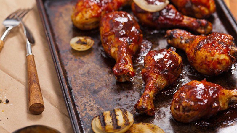 4. إدهني قطع الدجاج بالخليط وأعدي الصينية للفرن لمدة 10 دقائق وقدميه ساخنا وزيني بالبقدونس.