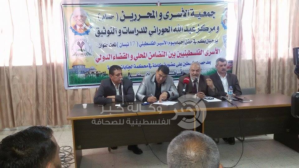 نظمت جمعية الأسرى والمحررين "حسام" بالتعاون مع مركز عبد الله الحوراني للدراسات والتوثيق ندوة قانونية بعنوان (الأسرى الفلسطينيون بين التضامن المحلي والقضاء الدولي) وذلك في قاعة مركز الحوراني بمدينة غزة .