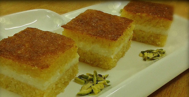 ثالثاً: طريقة عمل البسبوسة بالقشطة: