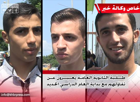 مراسل "وكالة خبر" التقى عدد من طلبة الثانوية العامة، وذلك لمعرفة أرائهم حول العام الدراسي الجديد، واستعدادات الطلبة للبدء بالعام الجديد، وللوقوف على مقومات الراحة التي يحتاجونها لضمان عام دراسي مستقر.