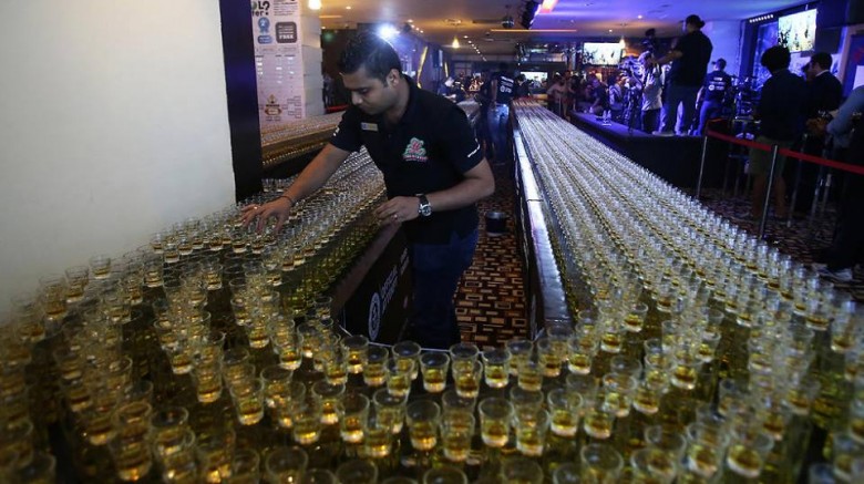 دخلت إمارة دبي أمس الاثنين، موسوعة "غينتس" للأرقام القياسية بـ 6148 كأساً من الويسكي والكحول جرى ترتيبها في سلسلة فنادق "سيتي ماكس".