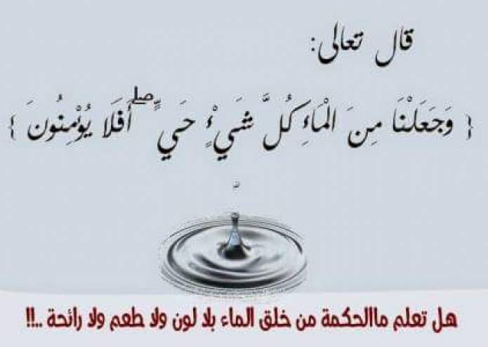 مما درسنا في المدرسة عن خصائص الماء بأنه بلا لون او طعم أو رائحة , فهل بحثت عن السبب ؟ هل بحثت وتسائلت عن حكمة الله سبحانه وتعالى في كون الماء الذي نشربه ماء عذب لاطعم له ولا رائحة ولا لون ؟