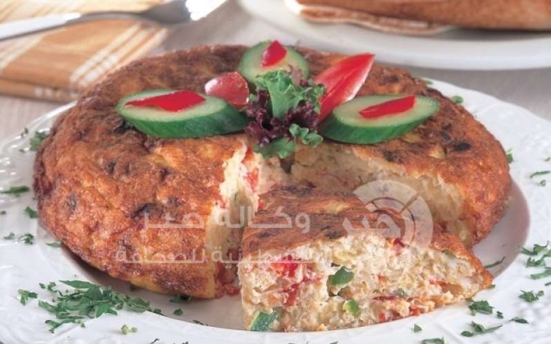 تغطى المقلاة وتطهى الأومليت فوق نار متوسطة لمدة دقيقتين أو ثلاث دقائق، ثم تخفف النار لمدة 01 الى 51 دقيقة إلى أن تنضج الأومليت وتظهر قشرة وردية ذهبية عليها.