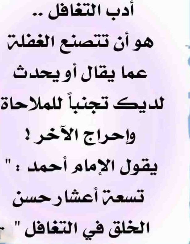 قلت لصاحبي: قد ورد عن النبي صلى الله عليه وسلم في ” أدب التغافل ” ( لا يَفْرَكْ مُؤْمِنٌ مُؤْمِنَةً إِنْ كَرِهَ مِنْهَا خُلُقًا رَضِيَ مِنْهَا آخَرَ ) رواه مسلم.