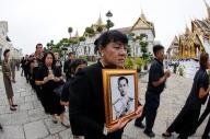 وأعلنت الحكومة التي يقودها الجيش في تايلاند الحداد لمدة عام ويتشح الكثير من التايلانديين بالسواد تعبيرا عن حزنهم.
