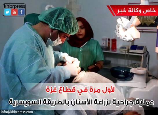 أحدثت عملية زراعة الأسنان الفورية السويسرية ثورة طبية جديدة في مجال زراعه الأسنان، حيث تجرى بدون ألم أو جراحه أو حتى خروج قطرة دم، فرغم ما يعاني قطاع غزة من حصار إلا أن إصرار أطبائها لمواكبة أحدث التطورات العلمية الطبية أجرى هذه العملية لأول مرة في قطاع غزة الدكتور الطبيب أيمن القدرة في عيادته الخاصة بمحافظة خانيونس جنوب القطاع.