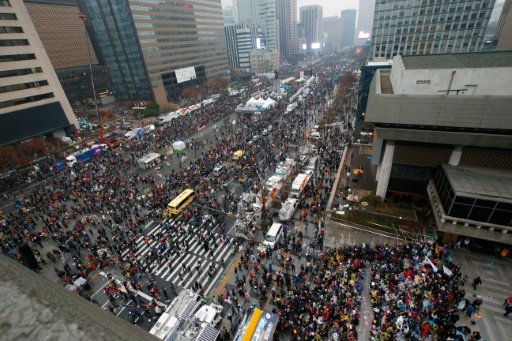 ونشر نحو 25 الف شرطي في سيول واغلقوا الطريق المؤدي الى مقر الرئاسة. وقال المنظمون انهم ياملون في تظاهر 1,5 مليون شخص في العاصمة في خامس نهاية اسبوع من التظاهرات.