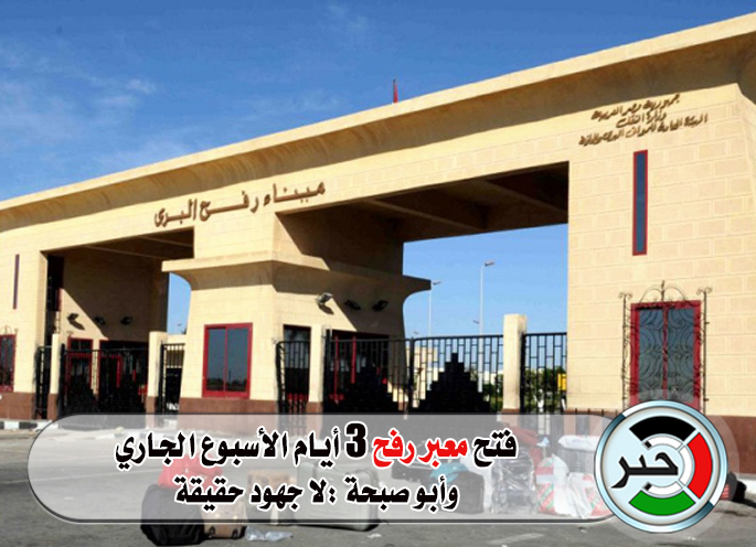 قال مدير دائرة المعابر بغزة ماهر أبو صبحة إنه حتى الآن لا جهود حقيقية تبذل من أي أحد لإعادة فتح معبر رفح البري طيلة الفترة الماضية.
