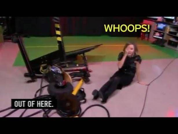 وانطلقت الدراجة بالمذيعة التي بدا عليها الارتباك، حتى وصلت إلى إحدى زوايا الاستوديو، واصطدمت بجهاز تلفزيون وانتهى بها المطاف على الأرض.