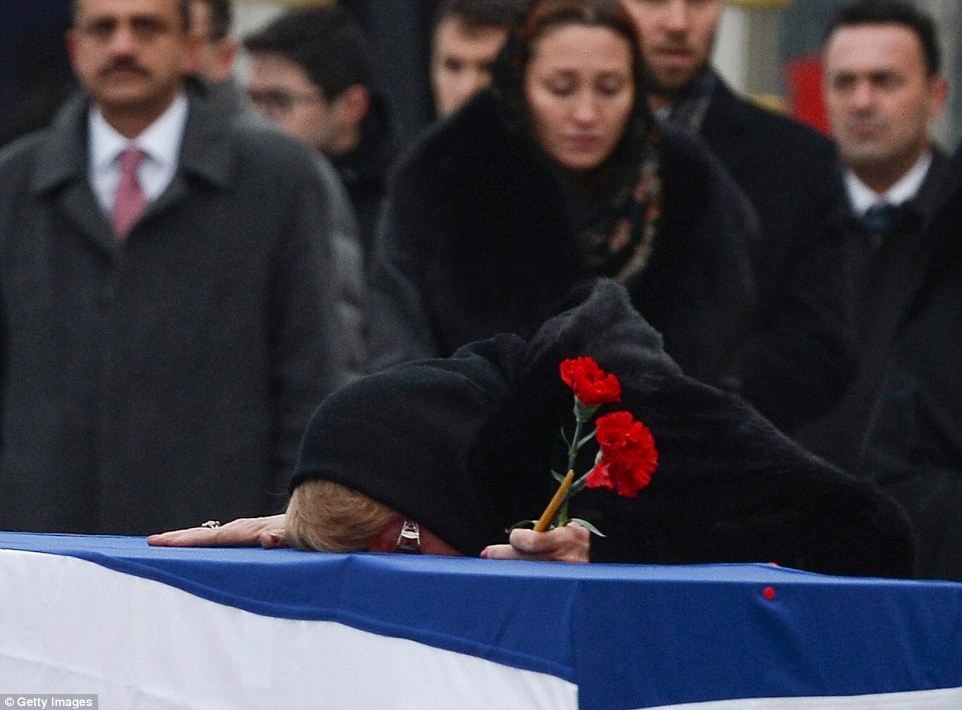 وقبلها كانت قد حضرت تأبينا للراحل أقيم في مطار أنقرة قبل نقل الجنازة إلى روسيا.