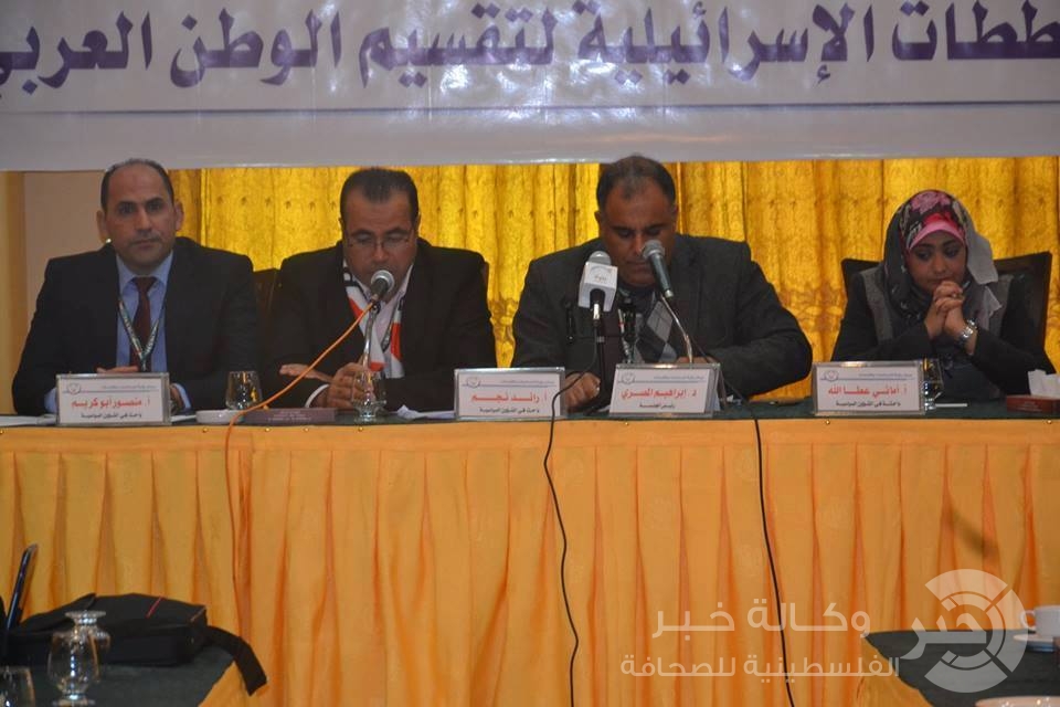 وأكد رئيس مركز رؤية للدراسات والأبحاث مصطفى زقوت، على ضرورة كشف المخططات الصهيونية والدولية لتقسيم الوطن العربي، مشيراً إلى أن إسرائيل استطاعت أن تخلق أعداء جدد للشعوب العربية من الداخل والخارج لكي تنحرف البوصلة عن العدو الصهيوني، وبالتالي تقسيم المنطقة العربية لدويلات على أساس طائفي وديني.