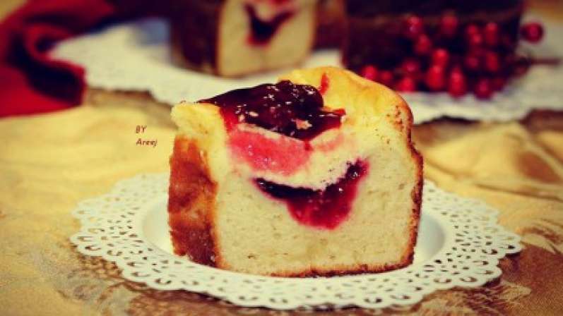 17- أخرجي القالب واتركيه على حرارة الغرفة لمدّة ساعتين ثمّ زيّني وجه الكيكة بما تبقى من حشوة الفراولة قدّميها.