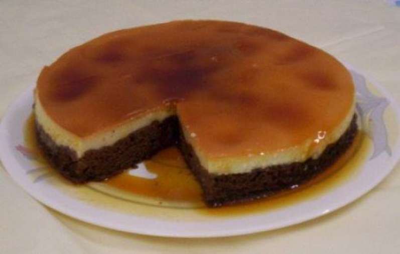 يصب خليط الكيك فوق الكريم كراميل ويوضع القالب في قالب اكبر به ماء داخل فرن بدرجة حرارة ( 350 ) ( حمام مائي ).