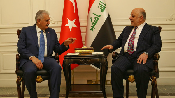 ونقل التلفزيون عن العبادي قوله: "أبلغنا رئيس الوزراء التركي أن العلاقات العراقية- التركية لا يمكن أن تتقدم خطوة واحدة من دون سحب القوات التركية من معسكر بعشيقة".