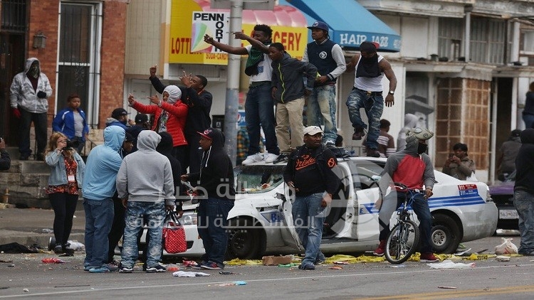 مع حلول الليل في مدينة بالتيمور بولاية ماريلاند الامريكية انتشر الاف من الشرطة وجنود الحرس الوطني لفرض حظر على التجول ومنع المزيد من العنف بعد ليلة شهدت اعمال شغب ونهب وحرائق عمد.