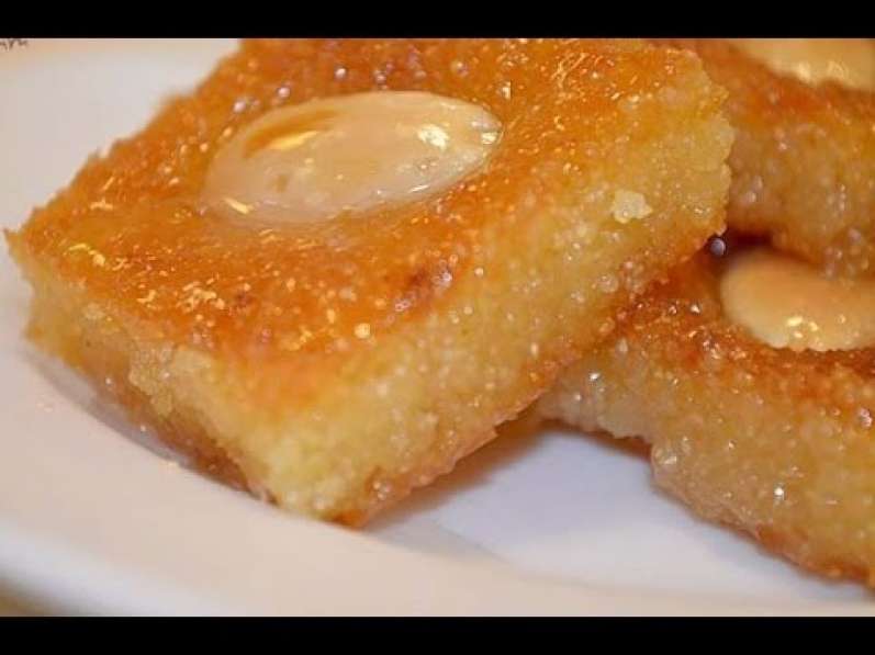 7- أخبزي البسبوسة في الفرن حتى يصبح وجهها ذهبي اللون.