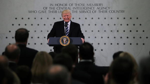 وفي أول يوم عمل كامل له توجه الرئيس ترمب إلى مقر وكالة المخابرات المركزية (CIA) في مسعى لرأب الصدع بعدما انتقد تحقيقات وكالات المخابرات في عمليات التسلل الإلكتروني لروسيا أثناء الانتخابات الرئاسية.