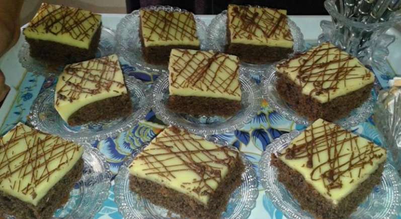 4 – أدخلي الكيكة إلى الثلاجة لمدة 3 ساعات حتى تبرد ثم قطعيها إلى مربعات وقدميها باردة.