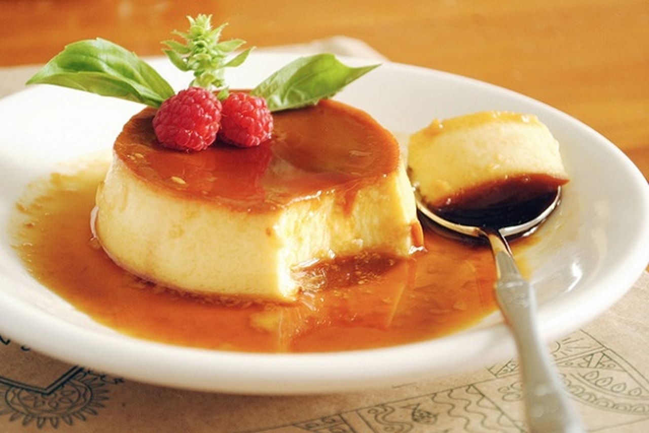 يحضر قالب كبير أو عدة قوالب وتوضع فيهم طبقة من الكراميل. ثم يُصب الخليط السابق إعداده على طبقة الكراميل فى كل قالب .