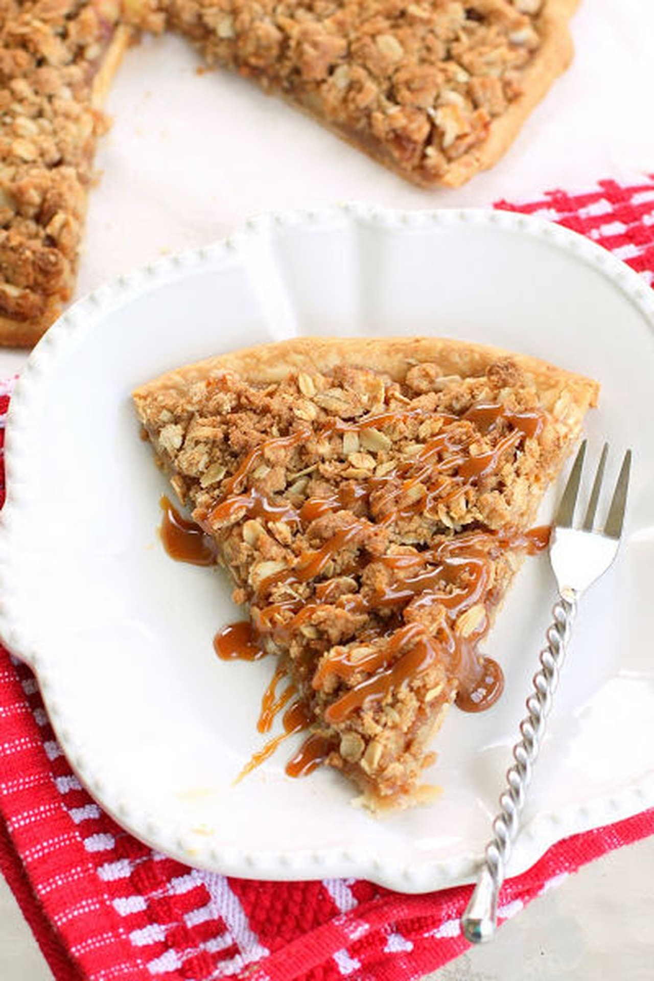 وزعي الخليط فوق التفاح واخبزي في فرن متوسط الحرارة لمدة 35-45 دقيقة.